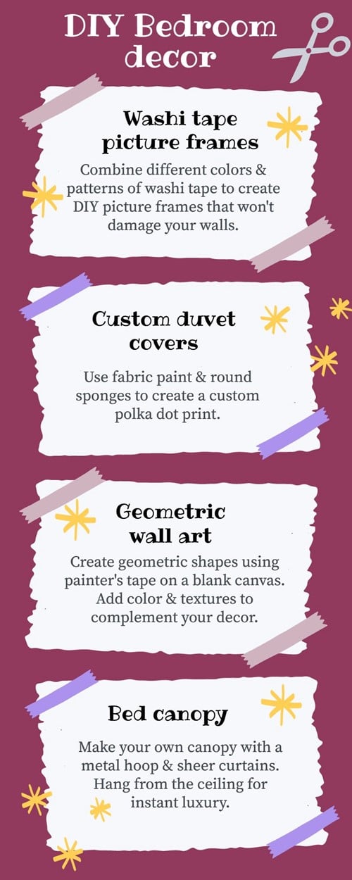 But how do you get started with making your own bedroom decor? Here are some fun DIY bedroom decor ideas to try in your space: